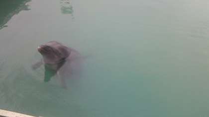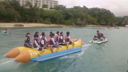 マリン体験の続きと文化体験の様子です。近くでイルカが顔を出していました。