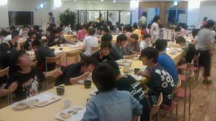 マリン体験で「寒い。しんどい」と言ってたのは、いったいだぁーれ?と思うくらいの食欲です。次のレクリェーションは間もなく,20時半から始まります。詳しい様子は,明朝お知らせします。ホームページの更新は,本日はこれを最後にします。ご覧いただきありがとうございました。