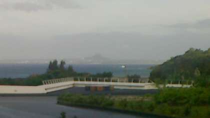 定刻より少し早い8時10分にホテルの方たちに見送られる中,出発をしました。写真にもあるように,沖縄に来て初めての太陽を見ることができました。1枚目の写真でも,太陽の日射しのお陰で,海の色が昨日とはまったくちがう,エメラルドがかった色になっていました。このまま天気がもってほしいな。