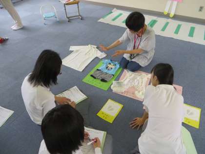 最後は、幼児視野めがね体験などのようすです。赤ちゃんの衣類や足の小ささには、みんなとても感動していました。みんなにもこんなときがあったのだよ。
