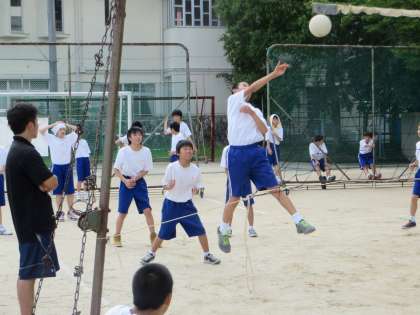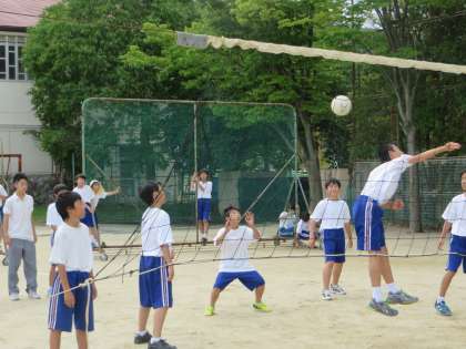 体育の授業の成果を発揮したかったのですが、3年生と比べるとまだまだ経験は浅く、ラリーが続くところまではいきませんでしたが、それでも明るくゲームを楽しんでいました。ミスがあっても“どんまい、どんまい”とか“気にせんとこ”といった声もかかり、気持ちよくやれたかなと感じました。