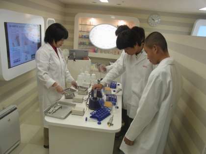 こちらはどこかの研究室でしょうか? 菌を観察する道具を前にご指導いただいています。そして橋をつくる土木建築家、歯科医(歯医者さん)と続きます。