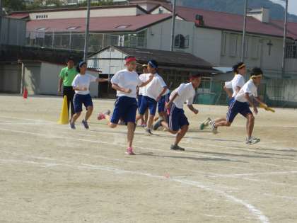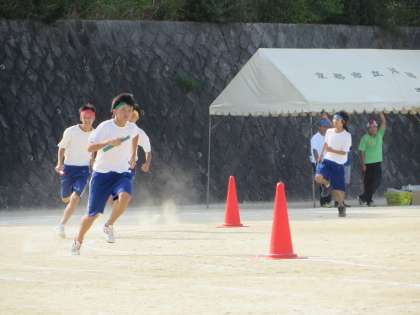 “混合リレー”の後は、学年別・男女別の“学級対抗リレー”が行われました。