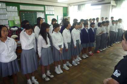 この写真は、昨日放課後、1・2年生の合唱タイムのようすです。パート練習を行った後、全パート(ソプラノ・アルト・テノール・バス)が集まって、合唱しました。