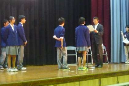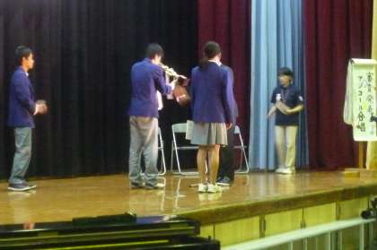 1枚目が2年生の“金賞”クラスで、2枚目は3年生の“金賞”クラスの表彰風景です。