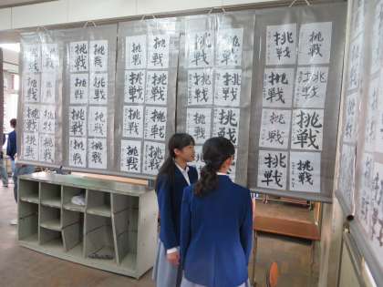 国語は夏休みの宿題(書写・毛筆)を、各学年にわたって展示しました。