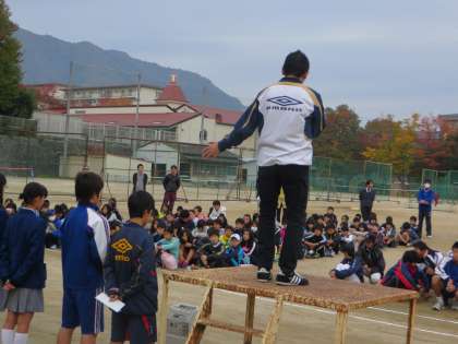 11時過ぎに、いったん全員がグランドに集合し、閉会式が行われ、校長先生や代表生徒からのあいさつにより、無事、部活動交流会は終了しました。