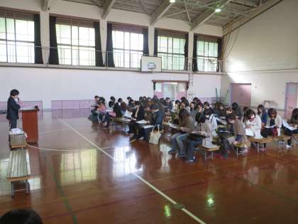 こちらの写真は、後半、保護者の皆様に本校教員からの説明を聞いていただいているようすです。