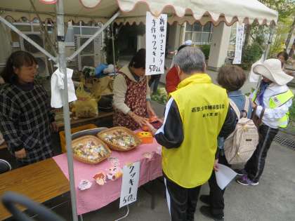 3枚目は、「手づくりクッキー」販売のようすです。(新林小コミプラ)
