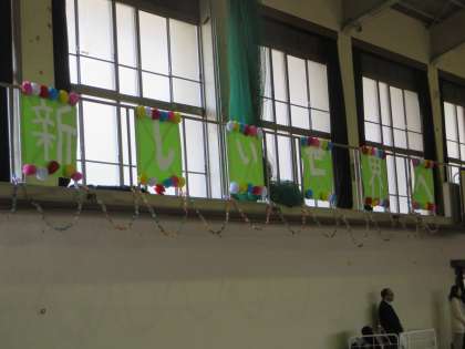 3年生の座席や花道をつくったり、きれいな飾り付けもしてくれました。評議委員(学級委員長)、文化委員、体育委員の皆さん、ありがとうございました。