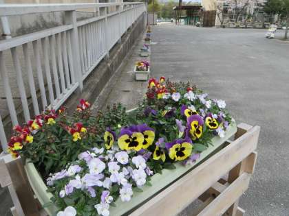 心配していた校内の桜の花も何とか咲き誇った状態を保っており、ひとまずホッとしています。まだ明日、明後日と雨が降るようなので、気になりますが、今日の校内の花のようすと、グランドで春休み最後の練習に汗を流している部活動のようすを写真にて掲載しておきます。