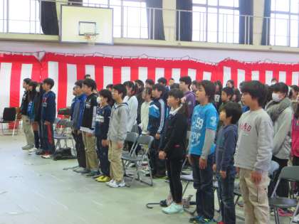 式場内で席に着いてみんなの表情は真剣そのもの。先生の「新入生起立」「礼」「着席」の合図にも、わずかな練習できれいに揃えることができ、こちらも「なかなかやるなあ」と感心しました。