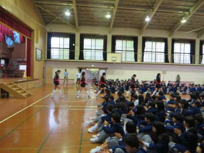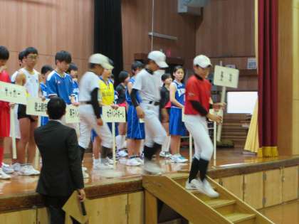 校長先生からの激励の言葉とともに、みんなからの励ましの拍手に見送られ、各部の選手たちは会場を後にしました。