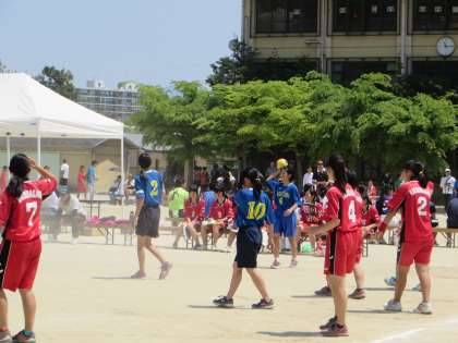 女子は出場規定の人数に足りないため、神川中学校と合同チームとしてエントリーし、出場しました。午前11時より試合は始まりました。