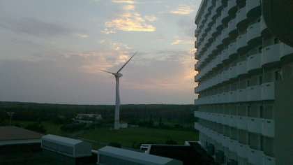 今日の沖縄は,10時現在晴れており,かなりむし暑い天候となっております。台風の影響も多少あるのか,昨日より風が吹いています。今のところ,生徒が体調を崩しているというようすはないようです。また,午後からは雨が心配されますが,バナナボートの体験もできるとのお話をいただいています。
