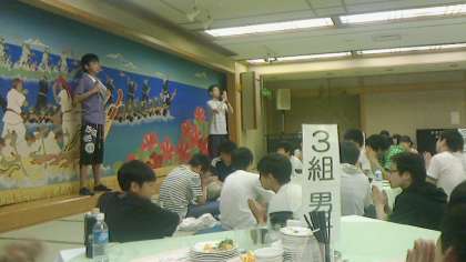 レクレーションが始まる前の,リハーサルの様子を撮影していたのですが,不具合で送れなくなったとのことです。生徒たちはみんな元気で,レクレーションを楽しんでいるようです。写真は,夕食の「ごちそうさまでした。」をしているNくんです。