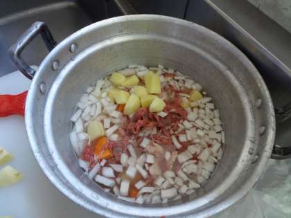 切った野菜はお鍋の中に入れていきます。