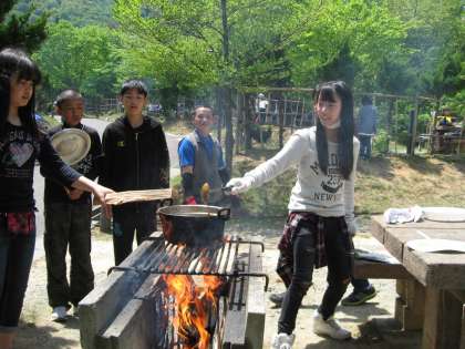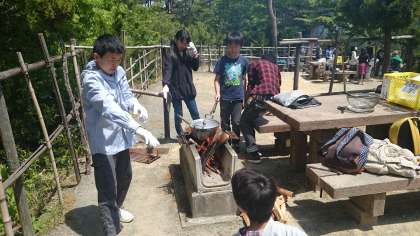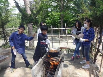 下ごしらえが終わった班は、いよいよお鍋を火にかけ、グツグツと炊いきます。