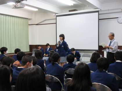 最後は、代表生徒が感想も含め、その日の学習についての報告をします。