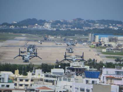 目を横に移すと、普天間基地が眼前に広がります。街中にあるというのを実感しました。