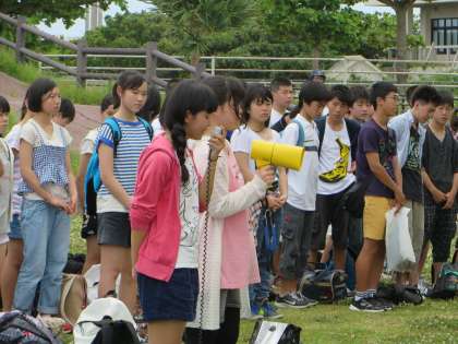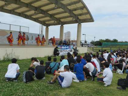 「お礼はやはり沖縄の言葉で」ということで、代表生徒はしっかりと練習し、本番でも堂々ともう一人の代表生徒からの通訳を交えながら、お礼の言葉を述べてくれました。よかったよ。