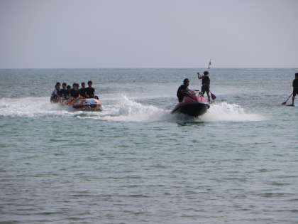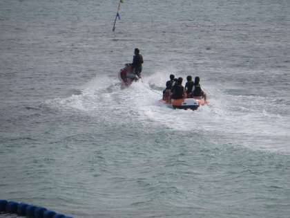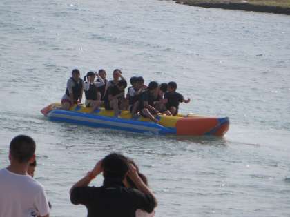 ドラゴンボートを体験。沖の方まで行って戻ってきます。
