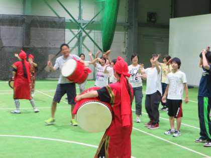 沖縄を楽しんで、太鼓に合わせて一心不乱。