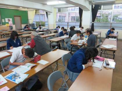 ボランティアの皆さんに、わからないところをしっかりと教えてもらっていました。