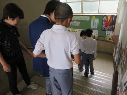 南校舎から北校舎へと階段を移動します。