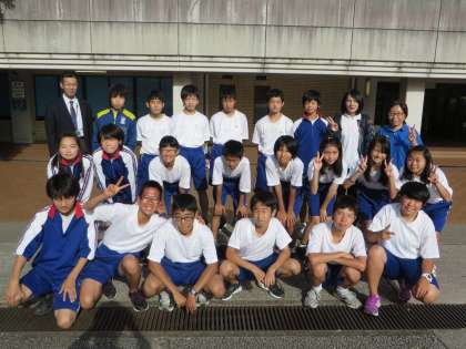 この写真は、競技場の前で、最後に参加者全員で撮影したときのものです。