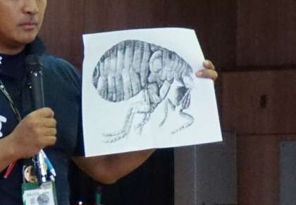 体長3mm前後のノミは、体長の60倍ほど上にジャンプができるそうです。(ちなみに、前には体長の100倍ほど跳べます)