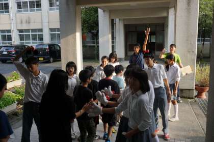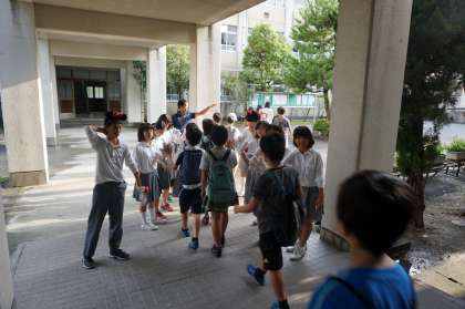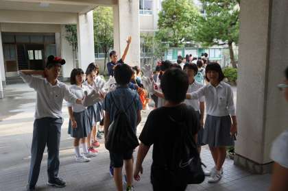 そして、最後は生徒会本部のみんなや先生たちに見送られ、帰って行く小学生のようすです。