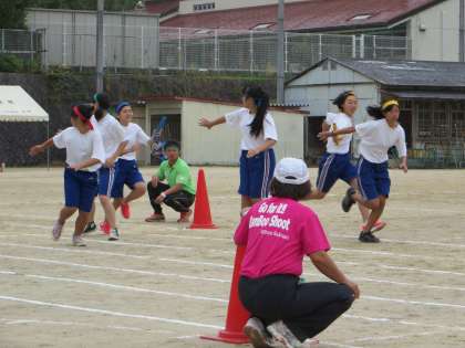 この写真は、3年女子の学級対抗リレーです。