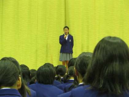 「僕たちは、あいさつ運動などに一生懸命取り組み、失敗を恐れず、真剣にやらないことを恐れ、活動してきました。」