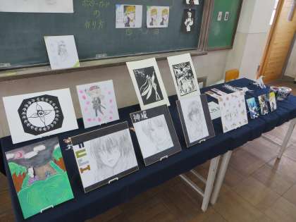 学校祭を控え、ようやく作品が出来上がり、折角なので出品前に生徒や保護者の皆さんに見ていただければと考え、校内に掲示しているものです。