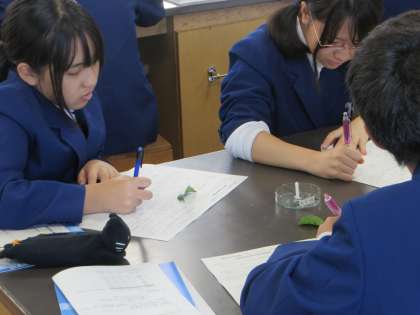 授業のようすを見ていると、板書したことや先生が説明したことをプリントに写したり、グループで話をしたり教え合ったり、実験やものづくり(立体等)などの作業をするなどいろいろな場面がありましたが、ほとんどの生徒が、どの場面でも前向きにしっかりと取り組んでいました。