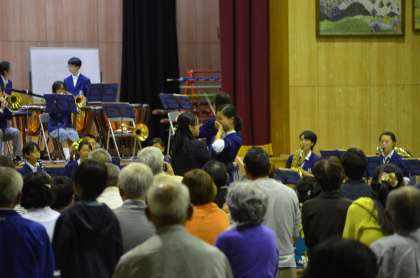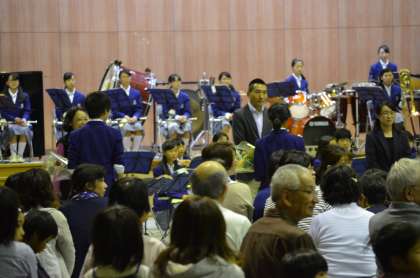 また、演奏会のフィナーレは、3年生の退場シーンです。3年生には顧問のT先生から花が渡され、涙とともに花道を歩いていきます。