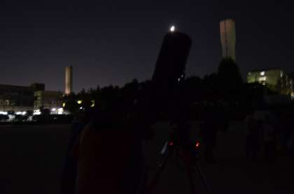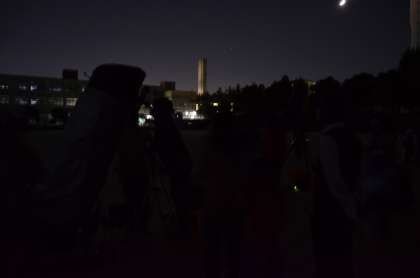 運動場は真っ暗だったので、望遠鏡をのぞく皆さんのようすも、あまりはっきりとは写りませんでした。