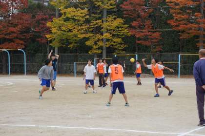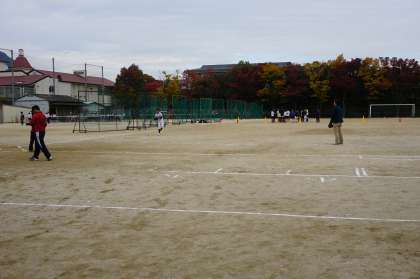 中学校グランドでは,サッカー・野球・ハンドボール部が練習交流しました。小学生も中学生と一緒にゲーム形式の練習もしました。