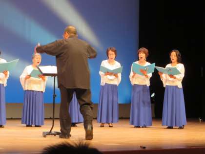 なお、下の写真は、そのコーラス部のホールでの発表のようすです。。(1曲目)