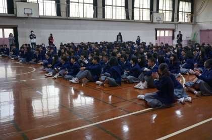 会場の生徒たちからは、担任・副担任や学年付きの先生が紹介されるごとに、温かい拍手がありました。