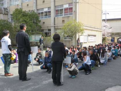 自分のクラスと名簿番号がわかったら、いよいよクラスごとに集合・整列です。