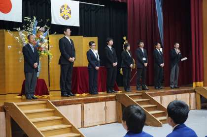 新1年生とともに、授業や行事等で一緒にやっていくことになる先生たち10名が紹介されました。よろしくお願いします。