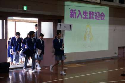 入学後5日目となる4月12日、“新入生歓迎会”が5・6限目に体育館にて行われました。