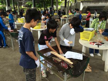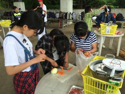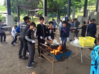 メニューは,みんなカレーです。火をおこすのは,小学校の時に行った「花背山の家」などで経験していることもあって,うまくできたようです。包丁を持つ手もあざやか,おいしいカレーができそうな予感!!