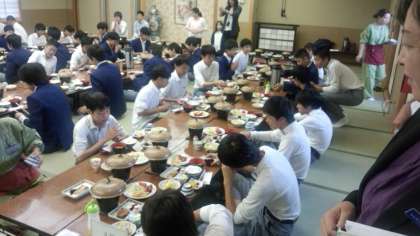2日目の朝を迎えました。朝食のようです。天気は曇り。残念ながら、富士山は全く見えず、記念撮影も断念となりました。全体的には睡眠不足かな!? 少しテンションは低目でした。それでも体調を崩している人はなく、食欲もあり、ホッとしました。