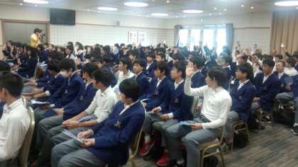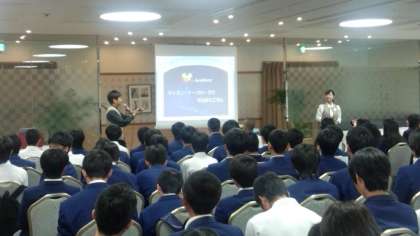 ディズニーアカデミーとは,東京ディズニーリゾートの現役キャスト(従業員)が,先生に変わってインストラクターとなり,"おもてなし"という視点を通じて,相手の立場に立ち自ら行動することの大切さを学ぶプログラムです。生徒たちは,講義だけでなく体験を通じて学びを進め,自分の意見も発表しました。
