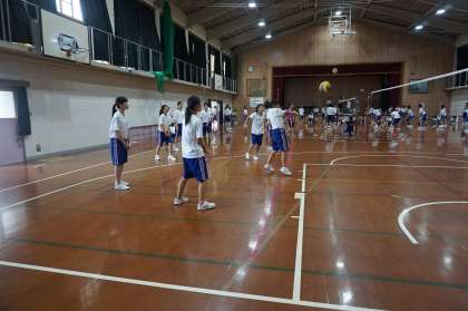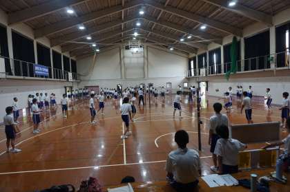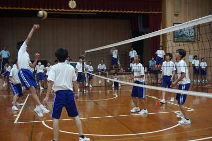 7月4日(月)5・6時間,体育館で3年球技大会を行いました。種目はバレーボールです。男女別学級対抗総あたり戦で行いました。さすが3年生,1回で相手コートに返すことはほとんどなく,アタックもしばしば決まりました。