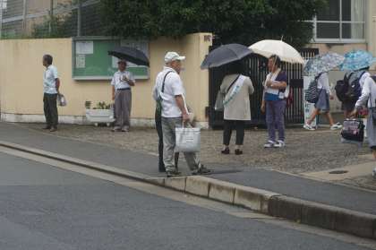 7月12日(火)朝8時より,“社会を明るくする運動”の啓発ティッシュ配りがありました。犯罪や非行を防止し罪を犯した人たちの立ち直りを支えるこの運動は,今年で66回目を数えます。あいにくの小雨降る中,保護司会の方(先日,本校体育館で行った非行防止教室の出演者の方も来て下さいました)をはじめ,地域の皆さんが,登校してくる生徒一人一人に“おはよう”と声を掛けられ啓発ティッシュを配られました。おはようございます,ありがとうございます,と応える生徒もいれば,まだ眠そうに“………”とささやく生徒も。いずれにせよ,地域・家庭の大人に見守られながら,いい夏休みを過ごせるといいですね。