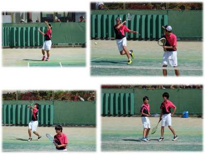 5月4日(祝)西院コートにて準決勝が行われました。男子テニス部は,ここまで勝ち進んで,準決勝を樫原中学校と戦いました。すでに3位は確定しているとは言うものの,一つでも上を目指したい気持ちはどちらも同じです。さすがにここまで来ると,どのペアもラケットが振れています。力強い球か行き来します。試合は2ペアが平行して戦いました。当初,順調な滑り出しのように見えたのですが,どんどんと追い込まれていき,2ペアとも落としてしまいました。勝敗が決定しての3ペア目でしたが,試合を投げず,最後まで戦い抜いてくれました。立派でした。